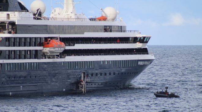 El Centro Coordinador de Búsqueda y Rescate Marítimo (MRCC) “Ushuaia”, dependiente del Comando del Área Naval Austral, recibió el viernes 20 por la mañana una alerta del buque de pasajeros “World Voyager”, de bandera portuguesa, que navegaba en el sector norte del Pasaje de Drake.