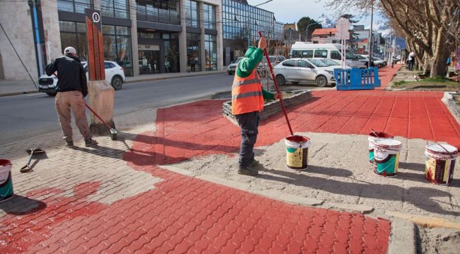 La Municipalidad de Ushuaia, a través del área de Servicios Públicos, lleva adelante tareas de embellecimiento y puesta en valor del casco céntrico en el marco de los preparativos por un nuevo aniversario de la ciudad y el inicio de la temporada estival.