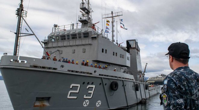 Operaciones navales en la Antártida. La unidad zarpó desde Ushuaia y asumirá como Buque de Servicio Antártico en el marco del operativo conjunto que llevan
