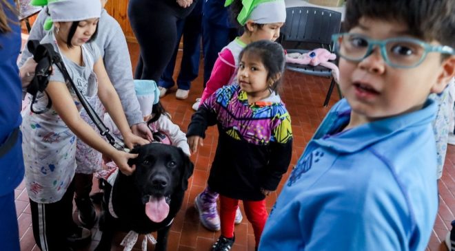 Jornada recreativa en el barrio Felipe Varela. La propuesta reunió a la infancia en una actividad integral que combinó cuentos, elaboración de galletas y la