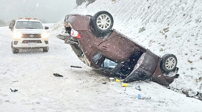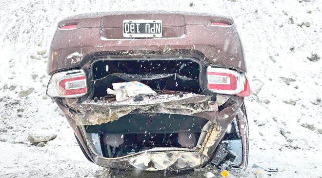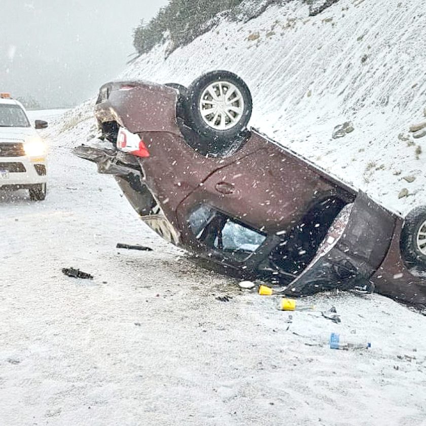 El siniestro ocurrió este domingo sobre la Ruta Nacional N° 3, cuando un Volkswagen Voyage perdió el control y terminó su marcha apoyado sobre el techo. Los cinco ocupantes debieron ser trasladados al Hospital Regional Ushuaia.