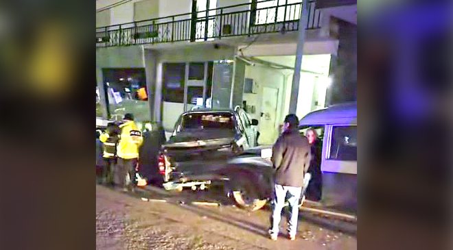 El último de los vehículos, una pick up, fue desplazado violentamente hacia la parte frontal del edificio propiedad de la familia Sartini, quedando a escasa distancia del nicho de gas.