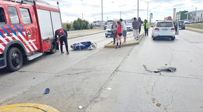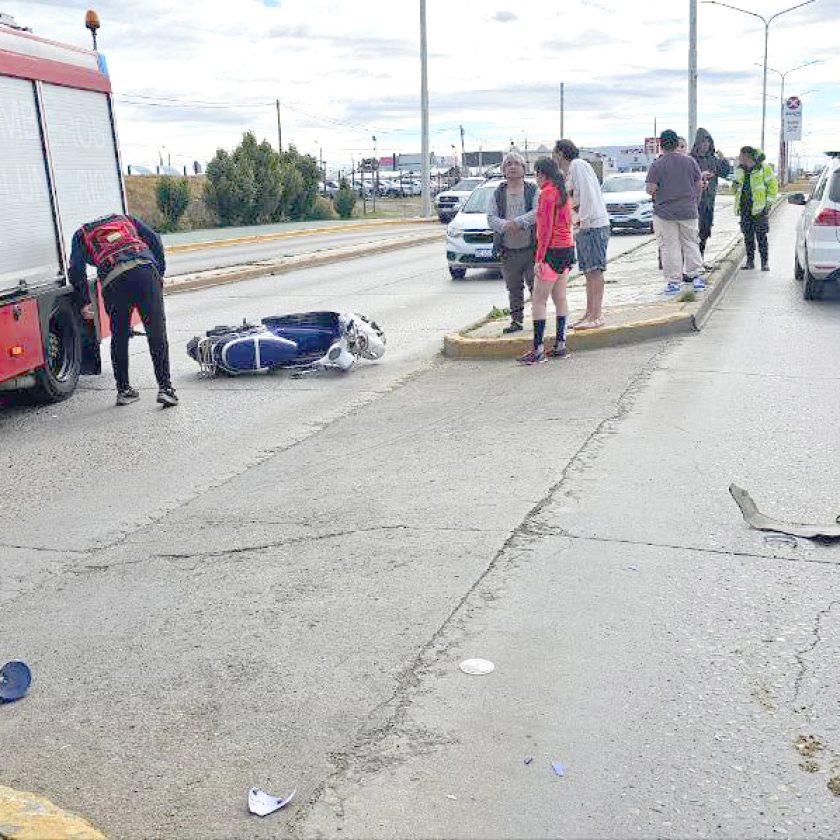 Un siniestro vial ocurrido el sábado 28 de febrero por la tarde en Río Grande dejó como saldo a dos personas trasladadas al hospital tras colisionar una motocicleta con un automóvil en una transitada esquina de la ciudad.