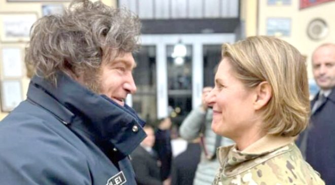 Segunda visita de Javier Milei a Ushuaia, el 4 de abril de 2024, para saludar a la ex comandante del Comando Sur, General del Ejército de los Estados Unidos Laura Richardson.
