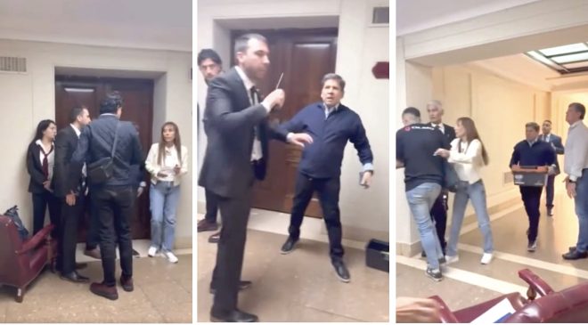 El lunes, y ante la falta de respuesta de Villarruel a mensajes y llamados durante el fin de semana —continuó relatando López— acudió al despacho junto a un cerrajero para recuperar sus pertenencias. Allí se encontró con personal de Seguridad que había dispuesto dos sillones a modo de barricada e impidió el acceso. En ese contexto se produjo un forcejeo, registrado por colaboradores y personal del Senado.
