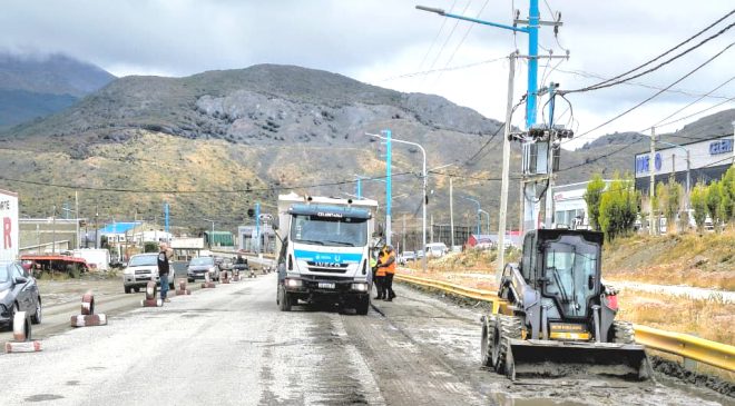 La Municipalidad de Ushuaia avanza con trabajos de mejoramiento vial en distintos sectores, en el marco del plan de mantenimiento de la red urbana.