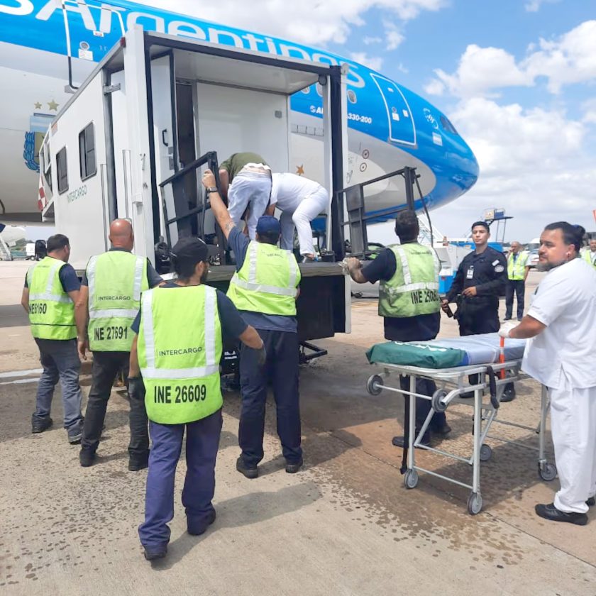 La plataforma utilizada para el descenso de dos pasajeros de 70 años y una mujer con movilidad reducida colapsó este miércoles durante una operación asistida. Los afectados fueron trasladados al Hospital Eurnekian.