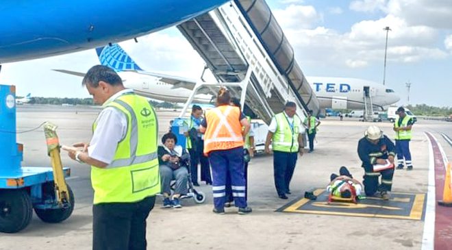 Mientras los tres pasajeros aguardaban en la plataforma para iniciar el descenso, la estructura cedió de manera repentina desde una altura estimada entre seis y siete metros. El desplome provocó politraumatismos en los tres usuarios que estaban siendo asistidos —un matrimonio de alrededor de 70 años y una mujer, cuya edad no trascendió—, quienes recibieron atención inmediata del servicio médico del aeropuerto.