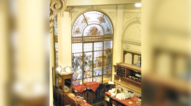 La emblemática confitería Las Violetas, ubicada sobre la avenida Rivadavia en Buenos Aires, luce vitrales creados por el mismo artista del que proviene la obra que será colocada en la parroquia Sagrada Familia de Ushuaia.