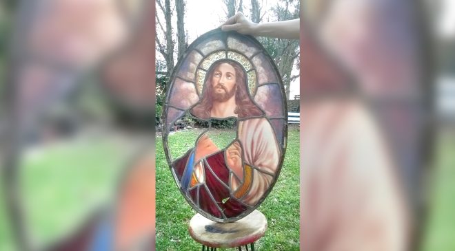 El vitral del siglo pasado representa a la Virgen de los Dolores, aunque algunos la identifican como la Virgen de la Piedad. Mide aproximadamente 1,10 metros de ancho por 80 centímetros de alto y tiene forma de medialuna. Será ubicado en la Parroquia La Sagrada Familia, en el barrio Monte Gallinero, en homenaje a mi gran amigo, el fallecido padre Aldo Moschetta. Siempre pensé que, en la iglesia donde él celebraba misa, debía quedar un recuerdo de su paso. La segunda pieza, el Corazón de Jesús, se emplazará en la Parroquia Nuestra Señora de la Merced, la iglesia a la que concurría mi abuela, doña Elsa Capará. Ella era francesa, vivía en Buenos Aires y amaba Ushuaia. Murió aquí, el 5 de noviembre de 2015.