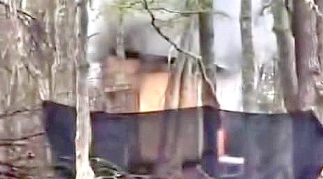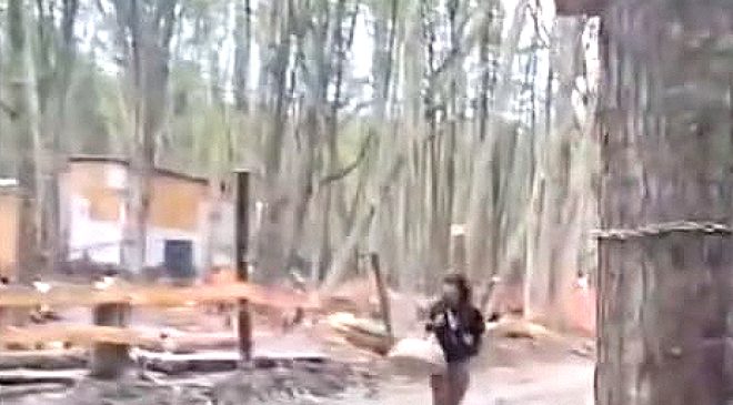 Gómez mira desde la calle cómo se quema su casilla, con absoluta tranquilidad, mientras es filmada e increpada por los vecinos, atónitos.